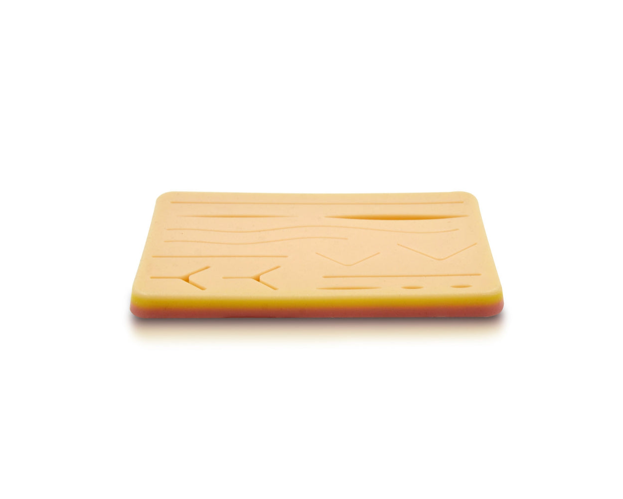 Introducing our NEW Practice Suture Kit for medical students needing that little extra practice on the closest thing to real skin and muscle you can find. Our pad is specially designed to mimic the real feel of human skin and tissue going all the way down to fat cells and muscle. The elasticity of the pad gives the realistic feeling of pulling skin and deep tissue injuries. The different style cuts on the "skin" help with realistic scenarios where suturing a straight line is not possible. Why be thrown into a real life scenario where a patient is bleeding out while you must quickly stitch them up with no prior realistic practice? Our portable practice set is perfect to bring with you for practice during your down time. Our set is the best on the market and comes with 1 suture pad, 1 set of practice surgical instruments including a needle holder, mosquito forceps, iris scissor, adson tweezer, and scalpel, also includes 5 practice blades, and 30 different sutures. Everything you need to practice over and over. **NOT FOR MEDICAL USE, PRACTICE ONLY**